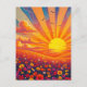 Send a burst of colour with the Radiant Sunset Over Whimsical Landscape postcard. Featuring a breathtaking sunset in vibrant oranges, yellows, and pinks, this postcard captures a whimsical scene adorned with wildflowers and abstract patterns. Perfect for sharing with friends or framing as a piece of art, this postcard is a delightful reminder of nature's beauty and positivity. Whether for special occasions or everyday greetings, it’s sure to brighten anyone's day!