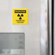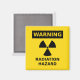 Warning - Radiation Hazard - caution yellow magnet with black lettering and radiation symbol.