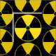Radiation warning symbol pattern in black and yellow.