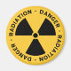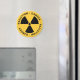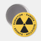 Yellow magnet with black radiation symbol and warning text.