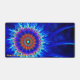 A multi-colour, radial fractal image; orange pink and blue on a darker background. Customise by adding your own text.