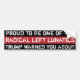 A political anti Donald Trump design that calls out his hyperbole with snarky sarcasm. Says ‘Proud to be one of the radical left lunatics that Trump warned you about’.