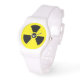 Black radioactive symbol on a yellow background.  This handsome timepiece radiates style!