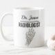 A mug featuring the words RADIOLOGIST with a loose illustrative skeleton view of a hand. Designed as a personalised name gift, this makes a thoughtful thank-you or appreciation gift.