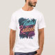 A vibrant t-shirt design featuring the text "Radish Radical" in a bold, multicolored font. Playful radish illustrations or abstract shapes complement the text, creating a fun and eye-catching design.
