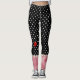 These trendy leggings have everything we love: Polka Dots, Stripes, Dripping Paint Trim, and Raggedy Edged Hearts! Super cute look, this original design by Leslie Sigal Javorek mimics a pair of red and white horizontal striped knee-socks w/a white scalloped top edge worn over a pair of white on black polka dotted knickers, accented w/2 red hearts (1 on the right knee, 1 on back).
