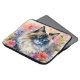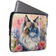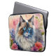 Laptop sleeve features delicate watercolor artwork of a beautiful rag doll cat surrounded by flowers in a feminine aesthetic animal portrait.