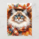 Ragdoll Cat In Autumn Scarf With Fall Leaves Postcard