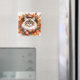Magnet features an adorable rag doll cat wearing a scarf and hat, surrounded by fall leaves and decor.