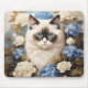 Ragdoll Cat With Blue Hydrangea Flowers Mouse Mat