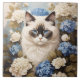 Ragdoll Cat With Blue Hydrangea Flowers Tile