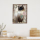 Ragdoll holds single pink antique rose and is posed in an antiqued background to make a beautiful antique style print for the person who has a Ragdoll cat.