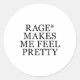 Rage Makes Me Feel Pretty Funny Humor Saying, Sarc Classic Round Sticker