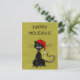 Funny olive green Christmas card with an evil ragged black cat wearing a Christmas hat.