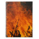 A pile of silhouetted sticks on the left side of the image burn hotly. Mesmerising dark orange and yellow flames fill most of the photograph's frame. Wind pushes the torrent of fire so it angles diagonally up to the right.