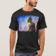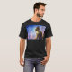 I give wanted to give this a 4 instead of a 5 because these Basic DARK T0shirts run unexpectedly SLIM or Narrow. Which is great if you do not have a potbelly, but I have a paunch. It isn't the shirt's fault that I've got a beer belly. The design and shirt itself is a quality cotton shirt. The color is more of a deep purple, but still a very pretty color. The Basic DARK T-shirts run a bit SLIMMER than the Basic Ts. The neck is a fraction narrower (or seems to be narrower) also. I'm a paunchy middle-aged woman and my neck is 12 inches (31cm) thick and the neckline fell about the same as in the photo of the man, and I had the desire to tug it a bit. So if you're a thick necked man or like loose shirts, be aware these are slimmer shirts. Once I get rid of my lockdown paunch it'll look great. The shirt washed well in cold water with no apparent bleeding. We don't have a dryer, so it hung dry. Did not shrink. Love the colors and the design. The design looks smaller on my shirt than it does on the model on-line. But still, it looks good on the shirt. The printing looks as it does on the model, just the size seems fractionally smaller. Washed garment in cold water, hung dry and design appeared unaffected.