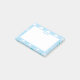 A lovely rainy day treat, these post it notes features a blue background with white clouds. Rain drops feel the area. In the middle is a blue and white box with a place to personalise your name inside. Purchase your post it notes today!