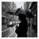 Black and white photo. Young woman in an umbrella on a rainy day