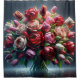 Immerse yourself in the enchanting beauty of this stunning artwork featuring a freestanding bouquet of tulips and roses, adorned with raindrops. The vibrant floral arrangement showcases shades of red, pink, white, light pink, and lavender