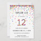 Rainbow 12-year-old birthday / 12th birthday party invitations! Featuring your 12 year old boy or girl's party details and a "12" in confetti, with fun rainbow coloured confetti circles sprinkling from the top of these cute invites