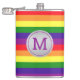 Rainbow 6 Stripe Gay Pride Monogram Initial Hip Flask