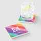 Love has no limits. Celebrate June Pride Month and show your support for the LGBTQ community with this original Gilbert Baker 8 stripe rainbow gay pride square stone coaster with custom monogram initial. Hot pink, red, orange, yellow, green, turquoise, indigo, and violet purple colours were designed by Baker to represent an all-encompassing symbol for the LGBTQ+ community.