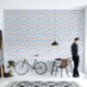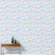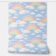 Pastel rainbows with puffy white clouds on a blue sky background for a nursery or child's bedroom.