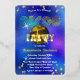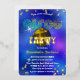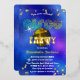 This funky custom party invitation features a retro disco theme on a metallic, pearl style blue background. A sparkly disco ball is placed in the centre. The word "Disco" is printed above it in a groovy rainbow font. The word "Party" is printed below it in real gold foil. The name of the guest of honour is printed in a matching gold foil elegant font. You can personalise the invitation to include your own event information or other custom text. Faded lights border the top and bottom portions. It's great for a bachelorette party, birthday, or other special disco themed event.