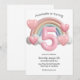 Rainbow and Hearts 3D 5th Birthday Party Invitation