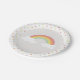 Rainbow clouds and pastel sorbet coloured polkadots feature on this disposable party paper plate for picnic, children's parties or soirees, st patricks day, first birthday, kid party, baby shower, bridal shower, adult party 30th birthday, 40th birthday,