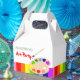 These customisable favour boxes will help you build excitement and set the tone for a fun and colourful celebration. We designed these art party favour boxes with the goal of celebrating and inspiring creativity in birthday girls and boys alike! The cute painter's palette boasts a rainbow of paint colours, and the accompanying paintbrush appears to have already been dipped in some red paint.