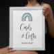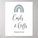 This charming baby shower sign features a delightful rainbow theme in soft hues, perfect for celebrating your little miracle. The design includes playful rainbow graphics with light blue accents, paired with modern and elegant typography. The phrase “Cards and Gifts” is prominently displayed, making it easy for guests to know where to leave their thoughtful offerings. This sign adds a cheerful and welcoming touch to your baby shower décor, blending seamlessly with rainbow or baby boy-themed celebrations.