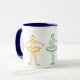 A row of cute, rainbow coloured ballerinas showing the traditional ballet positions.