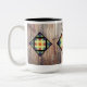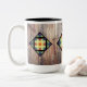 Rainbow barn quilts against barn wood Two-Tone coffee mug