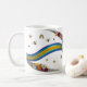 Sip your favorite drink with this enchanting Rainbow Bee Floral Glitter Mug! This whimsical and vibrant design features playful honey bees buzzing around a stunning rainbow wave, accentuated by shimmering glitter and colorful flowers. A delightful, joyful, and unique piece of collage art perfect for nature lovers, bee enthusiasts, or anyone seeking a sparkly, happy mug. Makes a wonderful gift!