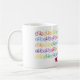 This mug features a repeating rainbow bicycle pattern, and a fully customisable name on the bottom.