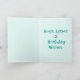 This card is great fun and good quality. I loved the humour inside and on the back. There is the opportunity to change the orientation of this card from landscape to portrait, which I did. It is relatively straightforward to amend the typeface to fit the new orientation. It was well packaged with no plastic. The printing on this card is excellent.