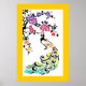 Rainbow, black peacock and cherry blossoms poster
