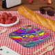 Red, blue, orange, purple, red colourful burst of colours abstract fluid digital art.