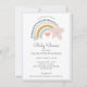 Modern adorable boho pastel rainbow watercolor baby shower invitation for a boy; simple and sweet, with a solid blue on the back of the invite. Soft muted colours. Modern whimsical style.
