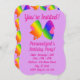 This birthday invitation is the perfect way to invite friends to a bow-tastic birthday party! Adorned with a fantastic rainbow bow, this invitation makes a super cute statement to get everyone exciting about celebrating!