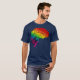 I give wanted to give this a 4 instead of a 5 because these Basic DARK T0shirts run unexpectedly SLIM or Narrow. Which is great if you do not have a potbelly, but I have a paunch. It isn't the shirt's fault that I've got a beer belly. The design and shirt itself is a quality cotton shirt. The color is more of a deep purple, but still a very pretty color. The Basic DARK T-shirts run a bit SLIMMER than the Basic Ts. The neck is a fraction narrower (or seems to be narrower) also. I'm a paunchy middle-aged woman and my neck is 12 inches (31cm) thick and the neckline fell about the same as in the photo of the man, and I had the desire to tug it a bit. So if you're a thick necked man or like loose shirts, be aware these are slimmer shirts. Once I get rid of my lockdown paunch it'll look great. The shirt washed well in cold water with no apparent bleeding. We don't have a dryer, so it hung dry. Did not shrink. Love the colors and the design. The design looks smaller on my shirt than it does on the model on-line. But still, it looks good on the shirt. The printing looks as it does on the model, just the size seems fractionally smaller. Washed garment in cold water, hung dry and design appeared unaffected.