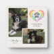 This personalized design includes space for two custom photos along with your pet’s name and years, creating a meaningful tribute that captures both the beginning and the lifetime of love shared. The combination of artwork and photography tells a complete story in one timeless display.