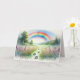 Printed with rich watercolor detail, this sympathy card offers a heartfelt way to honor a cherished companion’s journey across the Rainbow Bridge.
