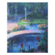 Rainbow hued bridge over a pond. Nice scene for kids. Original acrylic fine art.