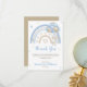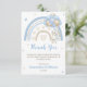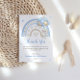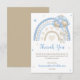 Send a heartfelt thank you with this adorable baby shower card! Featuring a soft watercolor rainbow in dreamy blue and beige tones, this charming design is paired with a sweet bunny floating with balloons. Gentle hearts and twinkling stars add a whimsical touch, making it perfect for expressing gratitude after a baby boy or gender-neutral celebration. A keepsake your guests will love!