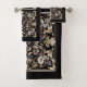 Wrap your bathroom in timeless glamour with this black, gold, and white Art Deco towel set, beautifully infused with Art Nouveau elegance and a soft, feminine touch. Featuring a radiant rainbow butterfly adorned with faux glitter accents, this design blends graceful, flowing lines with bold geometric structure for a look that feels both vintage-inspired and refreshingly modern. The butterfly’s shimmering colors and jewel-like sparkle create a dreamy focal point, while the luxe black-and-gold palette adds depth, drama, and sophistication.