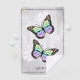 Personalise a unique towel for golfing with a Rainbow Butterfly Floral Personalised Golf Towel. Towel design features a pair of vibrant butterflies resting on a white floral vine against a light grey grunge background. Additional gift items available with this design as well as a variety of colours.