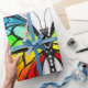 Realistic monarch butterfly in all the colours of the rainbow on a white background. Rainbow butterfly.