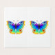 Rainbow, realistic, artistically drawn, bright colors peacock butterfly with textured detailed wings on white background. Rainbow butterfly.
